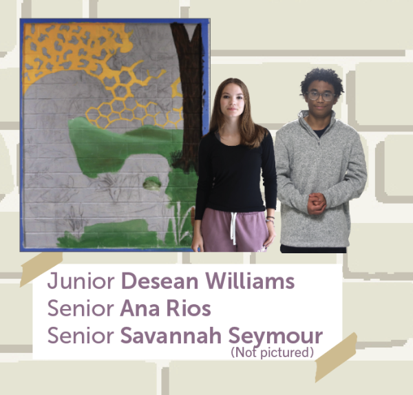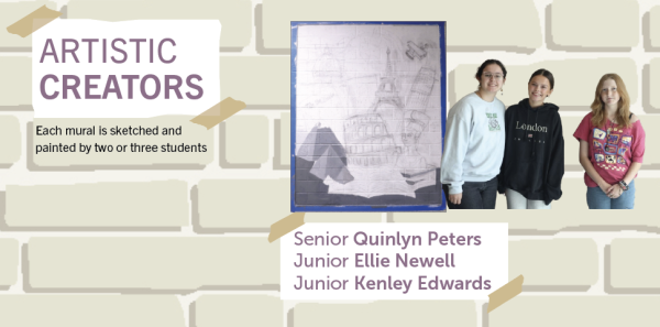 To complete the mural, Ellis and her Painting class came together to brainstorm ideas for what they wanted each mural to look like. Using those ideas, Ellis sketched out three rough designs in pencil, then put her drawings into ChatGPT to get three finished, colored designs. Ellis then had to have the designs approved by the administration before starting on the mural.